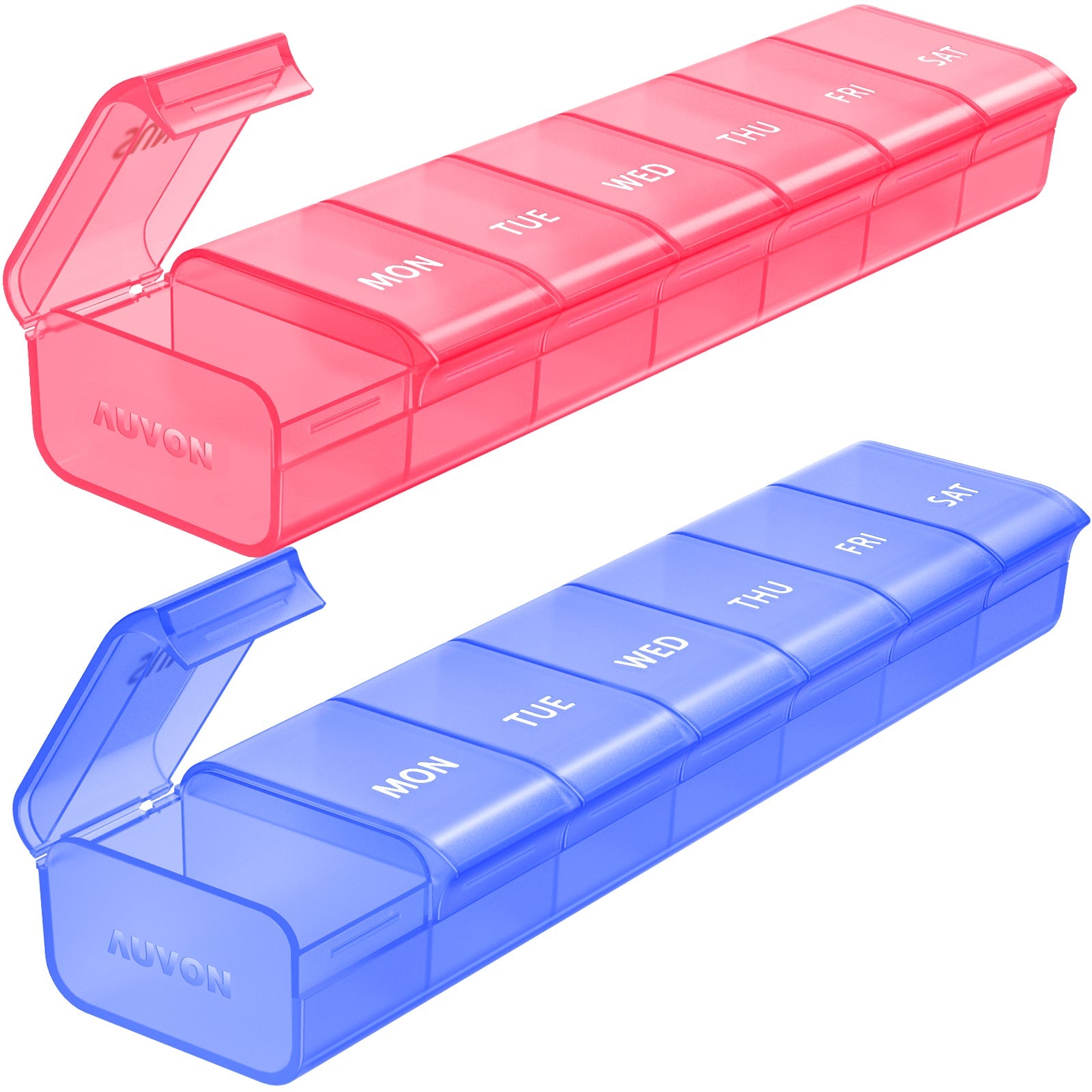 AUVON 2 Pack Weekly Pill Organizer, Dual-color Large Pill Case Set for Multiple Pill Tracking, Pill Box 7 Day for Travel, Pill Container for Home Use to Hold Vitamins, Supplements, Medications