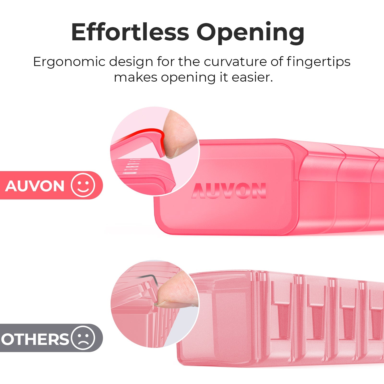 AUVON Weekly Pill Organizer with Effortless Opening Design, Arthritis Friendly Pill Box, BPA-Free Pill Organizer 7 Day, Cute & Portable Pill Case for Vitamins, Supplements and Medications