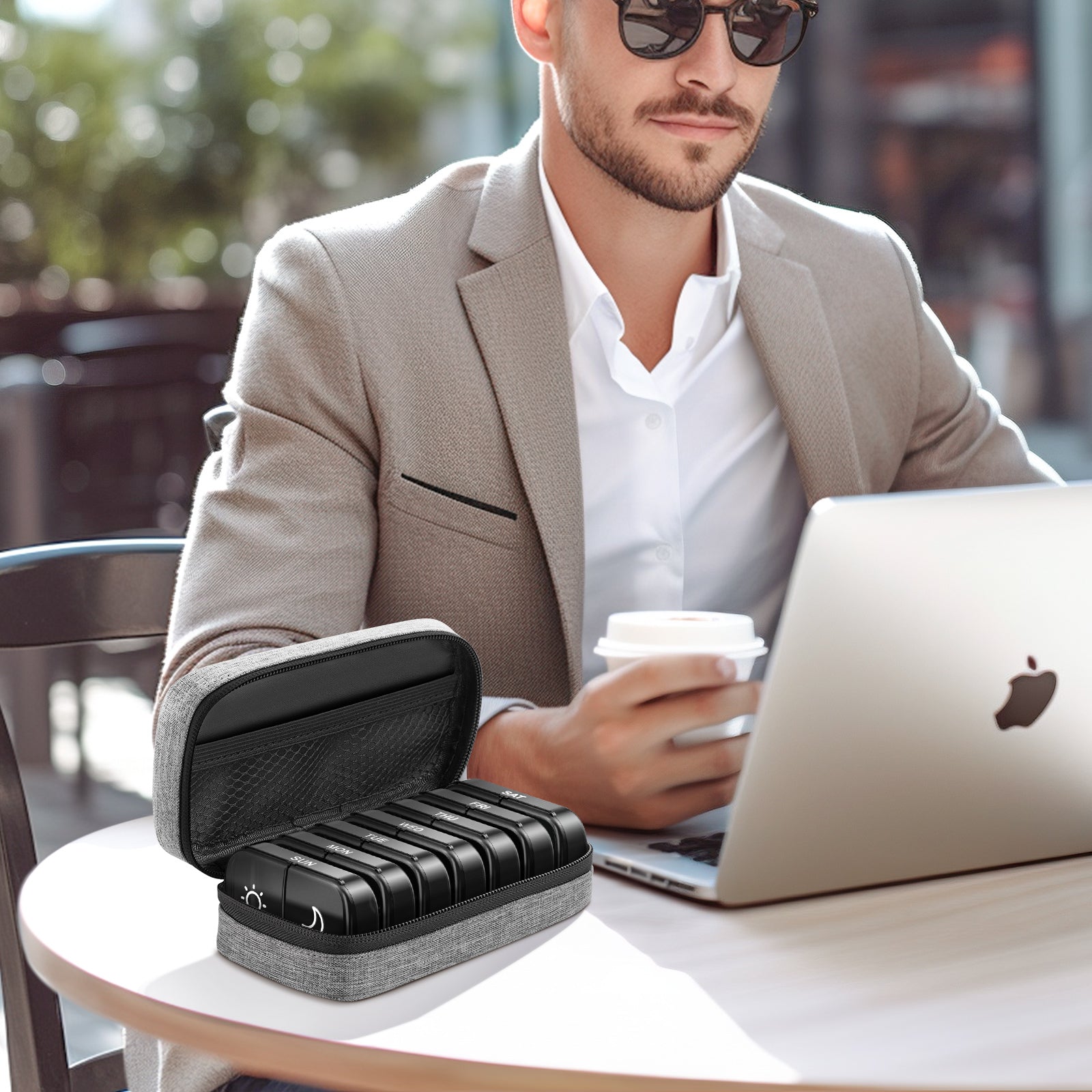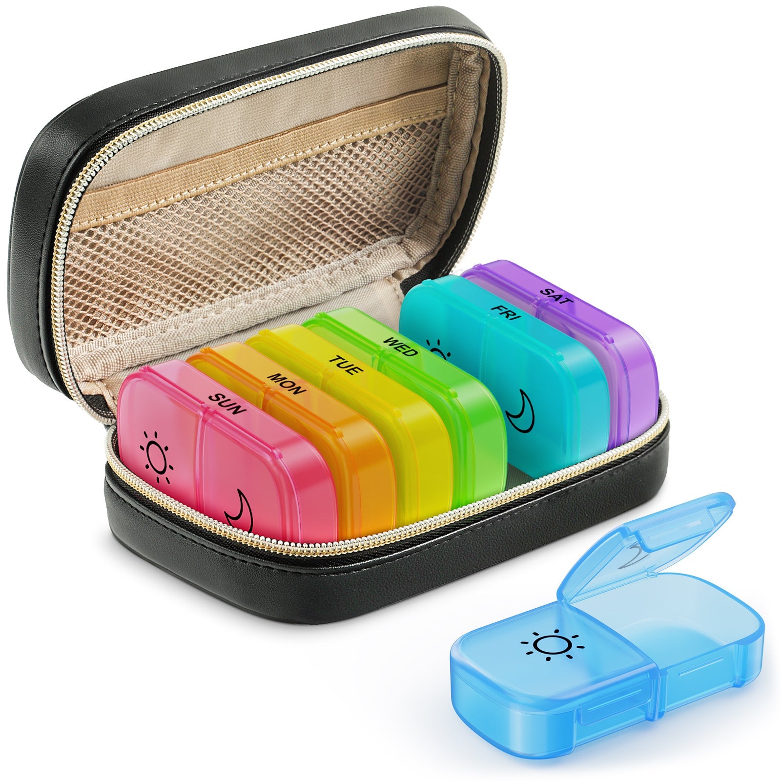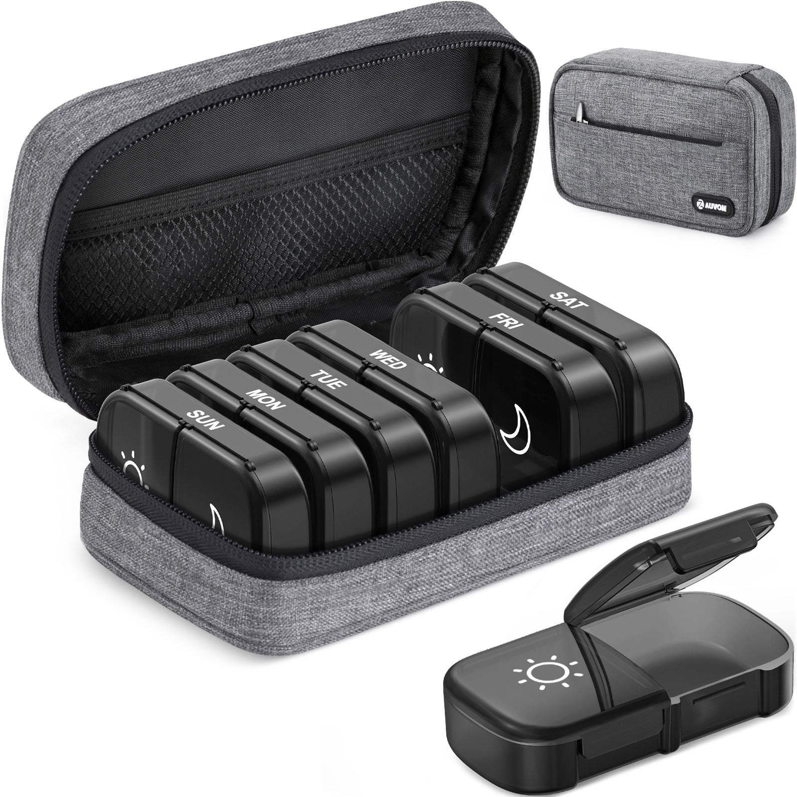 AUVON Pill Box 2 Times a Day, Weekly Pill Organizer AM PM with 7 Daily Pocket Case to Hold Vitamin, Medicine, Medication, and Supplement