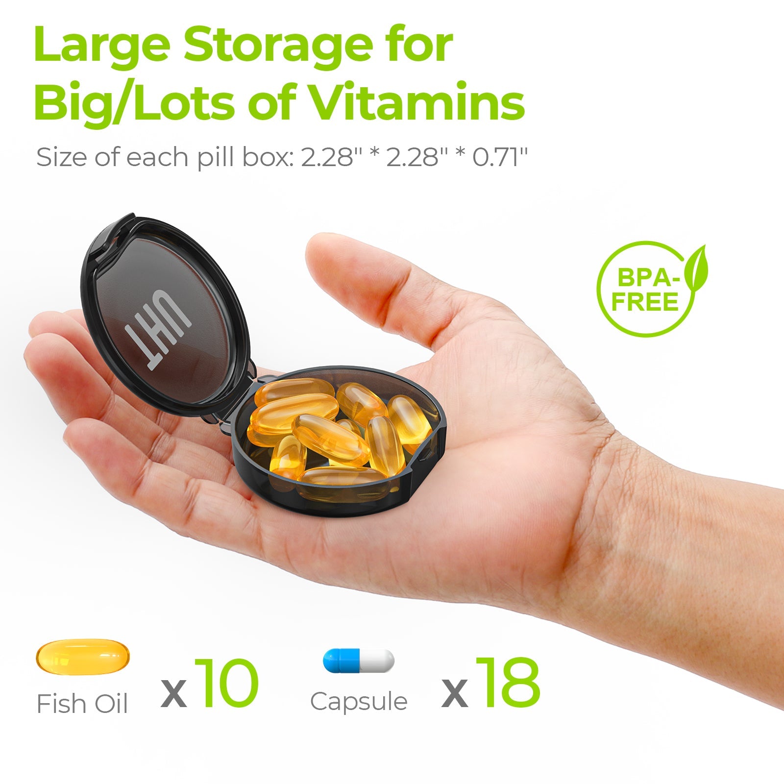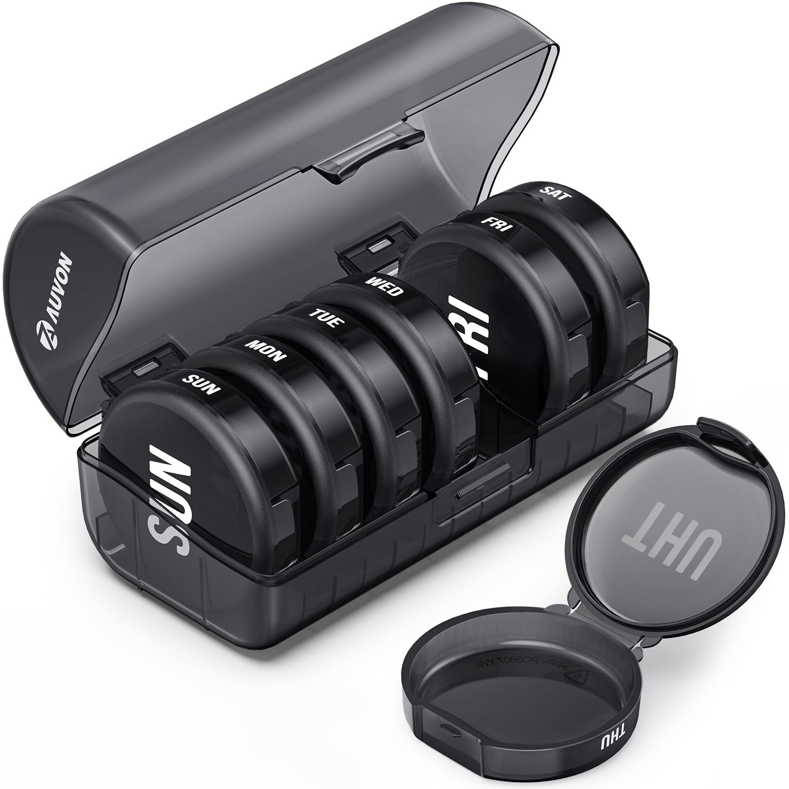 AUVON Large Weekly Pill Organizer for Big Supplements, Travel Pill Box 7 Day with Dual Protection, Wide Opening Pill Case Easy to Use, Black Privacy Protection Pill Dispenser for Vitamins, Fish Oils